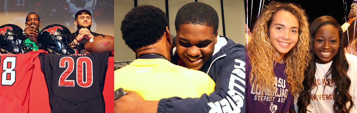 En Westfield High School, 11 estudiantes subieron al escenario para firmar sus cartas: futbolistas Joshua Carr (Universidad del Sureste Louisiana), Keondre Coburn (Universidad de Texas en Austin), Greg Green (Universidad Abilene Christian), Dorien Hawkins (Universidad de Texas en San Antonio), John F. Kennedy (Universidad de Texas A & M-Kingsville), Noah Massey (Universidad Estatal Bowling Green), Christopher Rodriguez (Hastings College), Ali Walter (Independence Community College) y James Young (Universidad Estatal Angelo); y los jugadores de voleibol Hadiya Dyer (Universidad de Langston) y Jada Roland (Universidad de Langston).