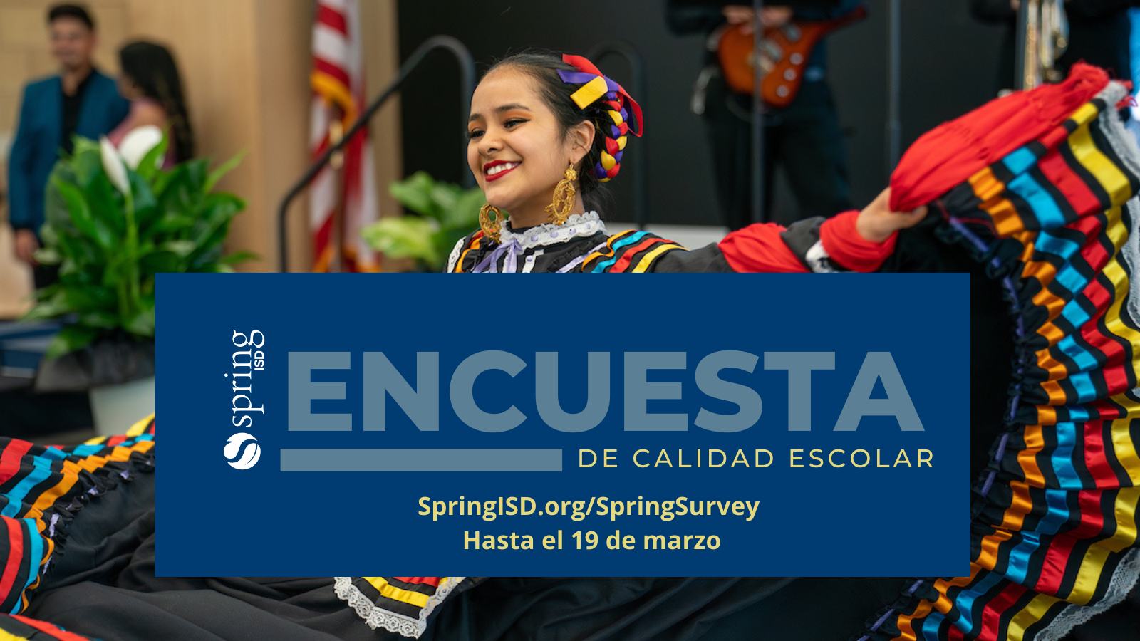 Esta semana se enviarán invitaciones por correo electrónico. Los padres y alumnos también podrán realizar la encuesta a partir del 19 de febrero en www.SpringISD.org/SpringSurvey. Los campus también dispondrán de encuestas en papel. Todas las respuestas son estrictamente confidenciales.